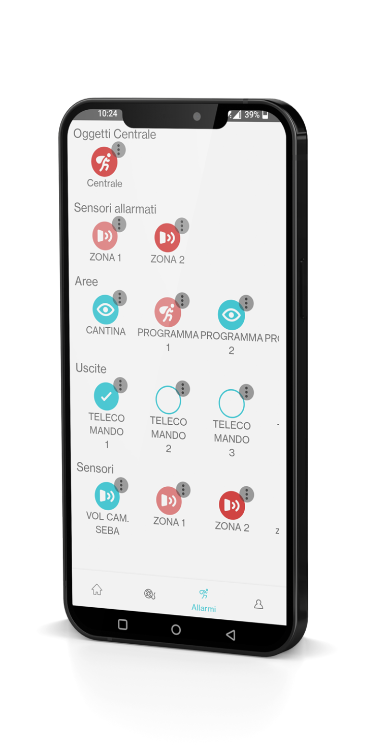 Con l’App è possibile vedere le immagini riprese dalle telecamere, attivare/disattivare l’allarme e monitorare lo stato di salute del sistema.